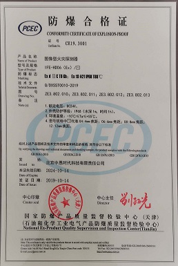 我公司又一款新产品-----IFE-D06(Ex)系列(多种焦距)高清型图像型火灾探测器顺利通过了国家石油和化学工业电气产品防爆质量监督检验中心的防爆检验,并获得了防爆合格证。此产品满足各种危险场所及户外场所的应用,可广泛应用于石油石化、煤化工、烟草、交通及其它工业领域中的灌区、油库、场所、仓储区、隧道等场所。