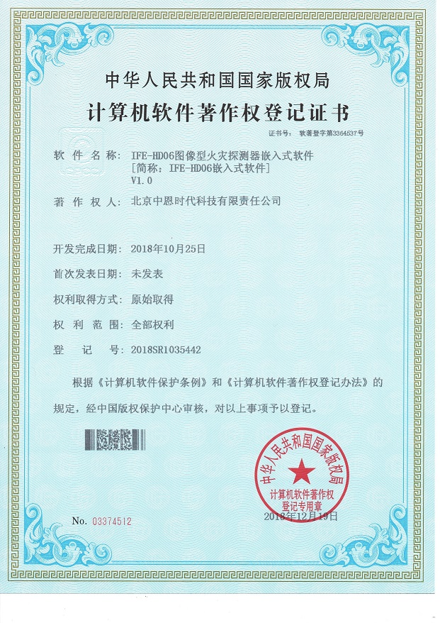 近日公司自主研发的新产品IFE-D02(S)线型光束感烟火灾探测器嵌入式软件、IFE-HD高清图像型火灾探测器嵌入式软件获得中华人民共和国国家版权局颁发的计算机软件著作权登记证书标志着我公司自主知识产权又创佳绩,充分展示了我公司高效的自主研发能力和持续的自主创新能力。